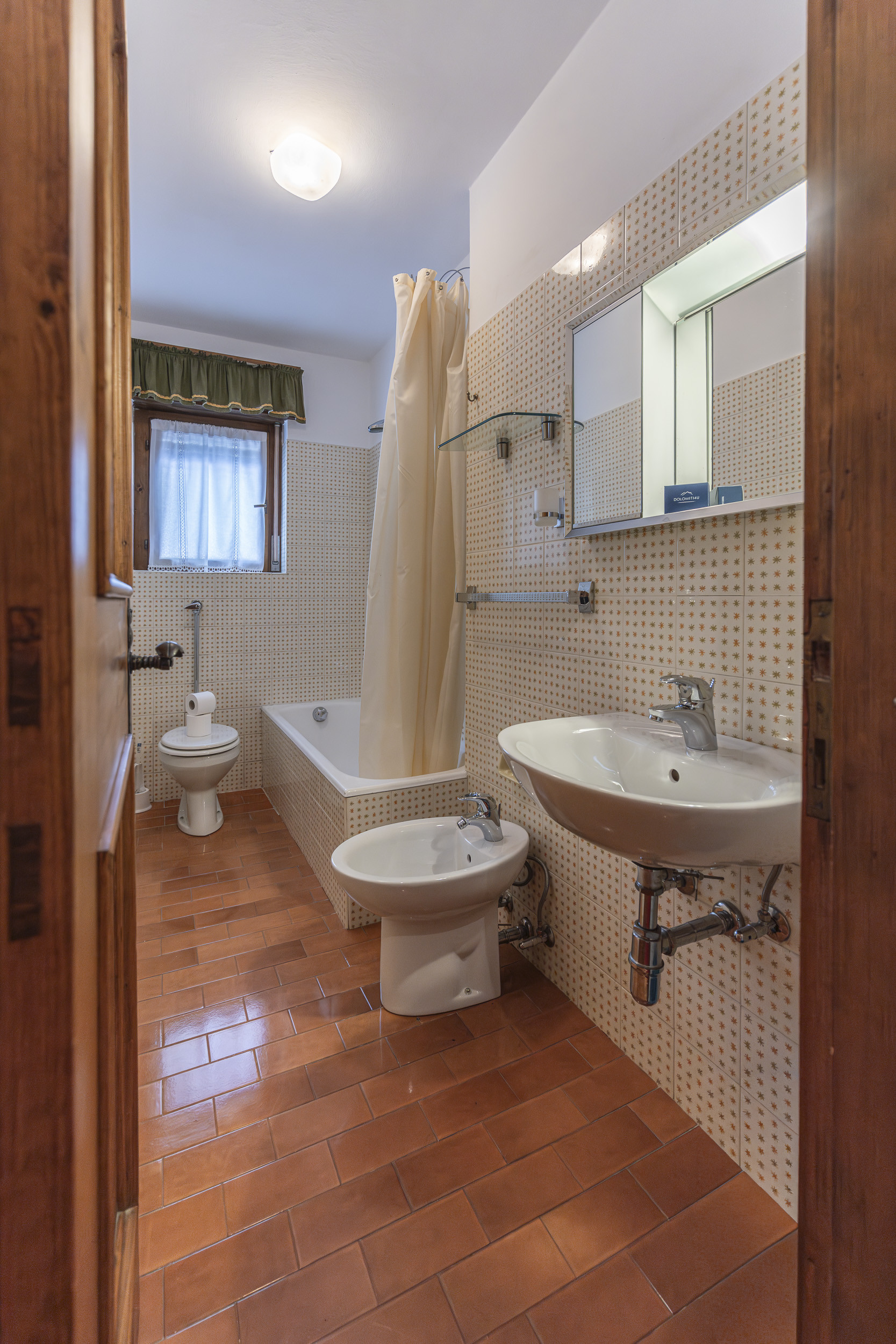 L’appartamento misura 60 mq e si trova al piano terra. La zona giorno è composta da un soggiorno con comodo divano letto, TV Lcd e tavolo da pranzo con sedie in legno. L’angolo cottura è attrezzato con forno, frigo, frizer, lavastoviglie e macchinetta del caffè Nespresso. Ci sono due camere da letto; una matrimoniale con TV, ampi armadi e bagno ensuite dotato di wc, bidet e box doccia. L’altra camera dispone di un letto a castello, armadio e TV. A disposizione un secondo bagno con wc, bidet e box doccia. A disposizione anche una lavatrice/asciugatrice. A completare l’offerta di questo appartamento un posto auto esterno, un deposito sci o bici e il collegamento internet Wi-Fi.