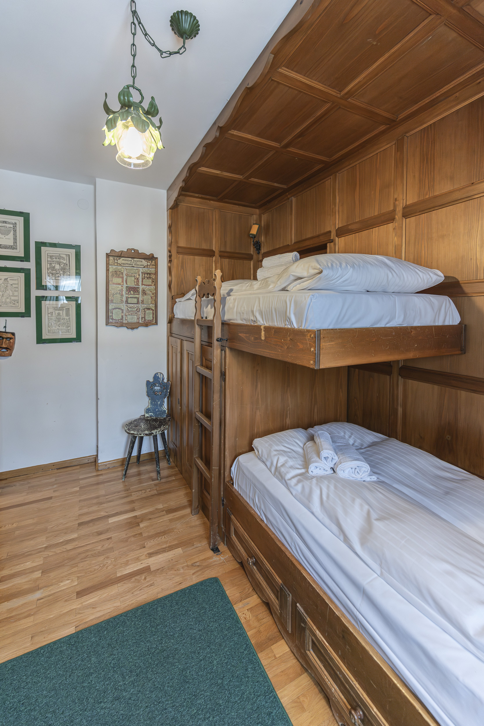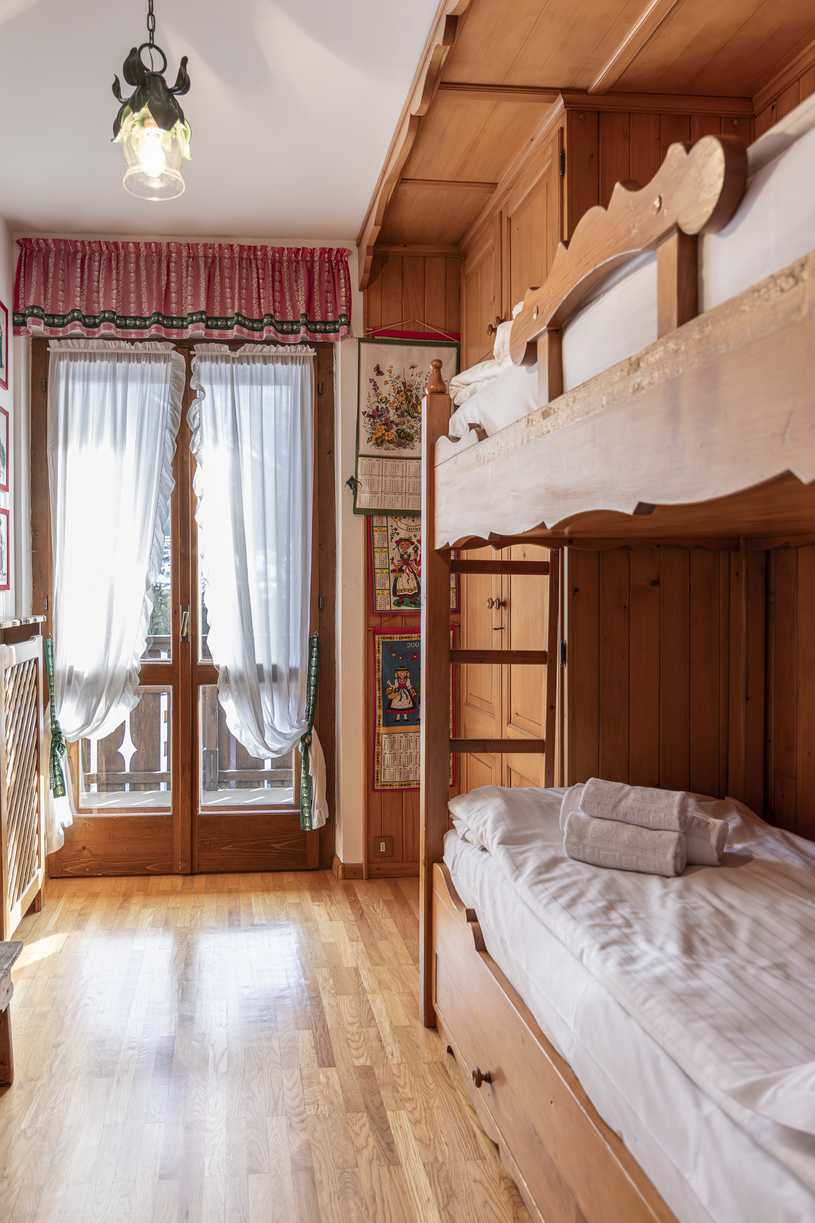 L’appartamento è arredato con cura nei dettagli, in stile rustico, completamente rivestito in legno. Dispone di due camere, due bagni e un comodo divano letto in soggiorno. Per la sua posizione e la capacità ad ospitare fino a 6 persone l’appartamento è ideale per una famiglia o un gruppo di amici che vogliono vivere una piacevole vacanza in montagna con la comodità di essere in pieno centro.