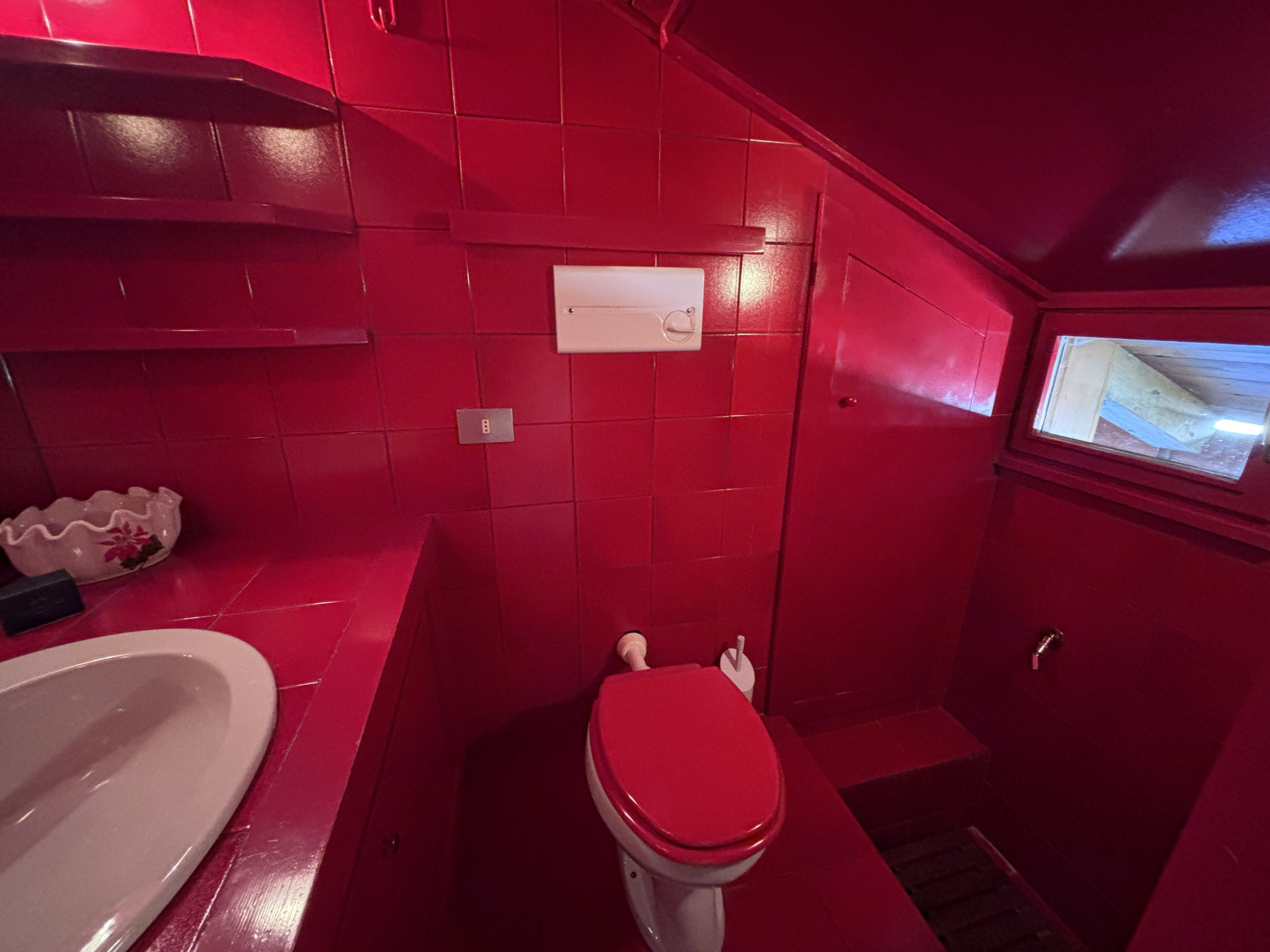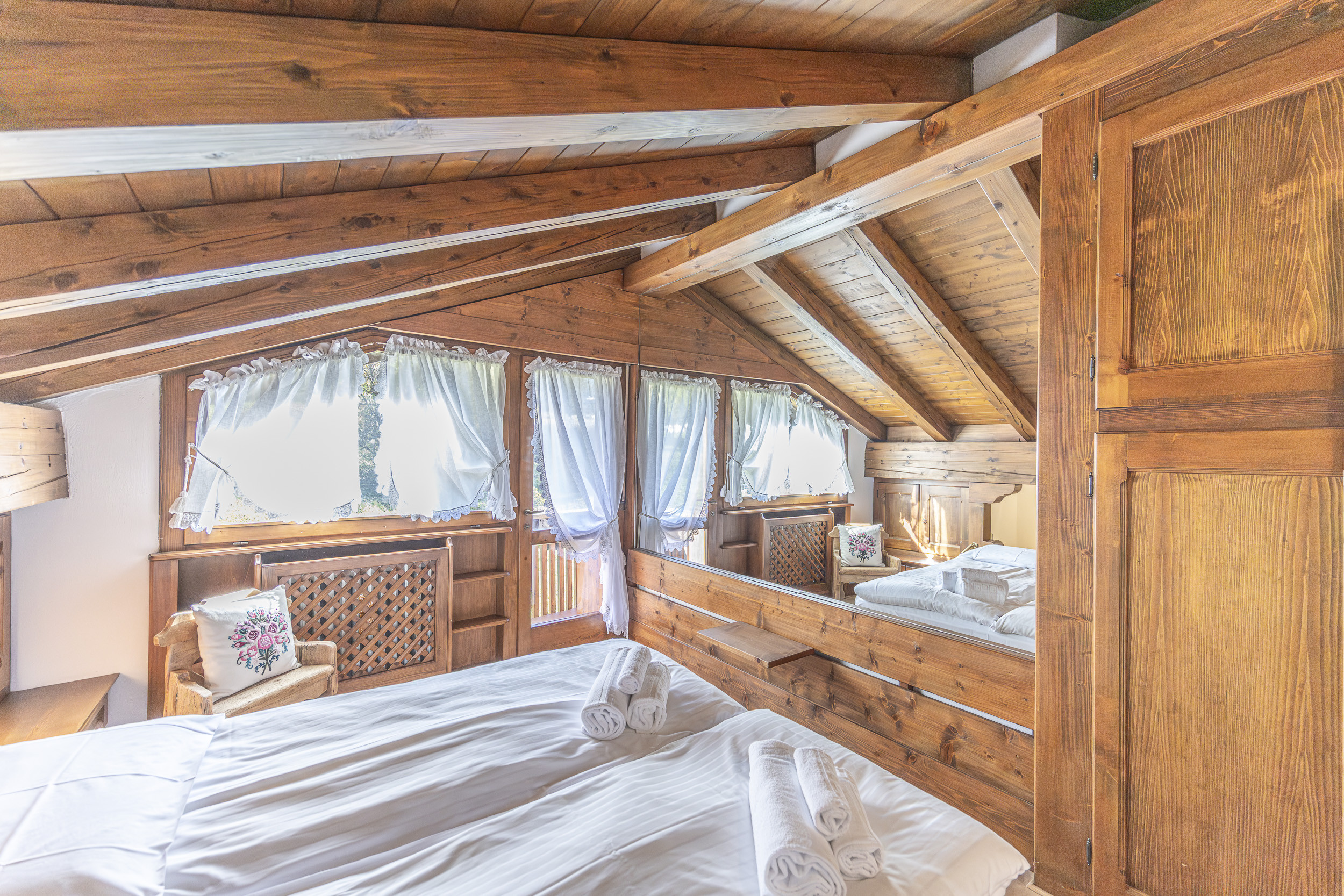 La zona notte si compone di una camera matrimoniale con bagno privato dotato di wc, bidet e box doccia, e di una seconda camera con letto singolo e letto a castello. È presente anche un secondo bagno, anch’esso con wc, bidet e box doccia.