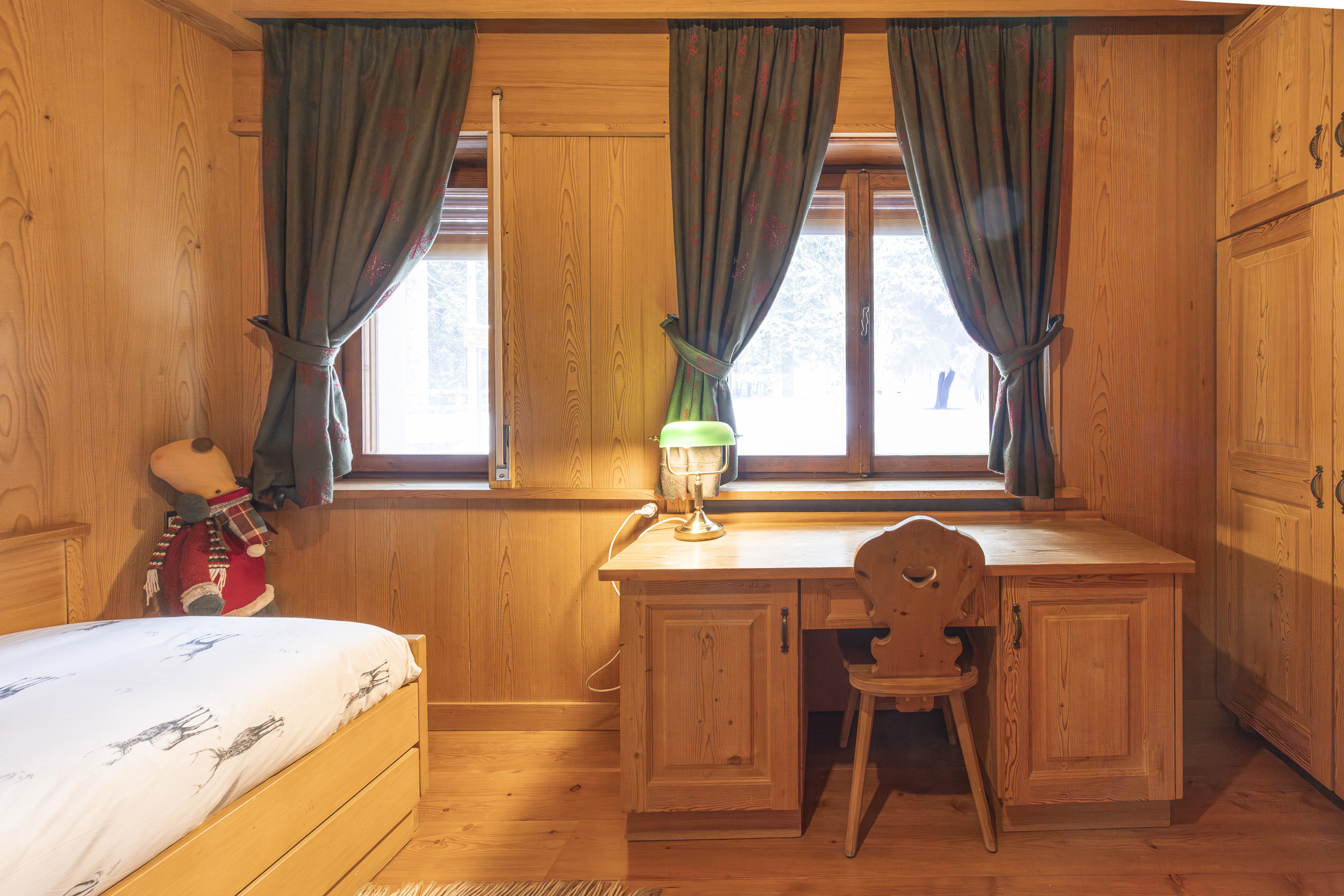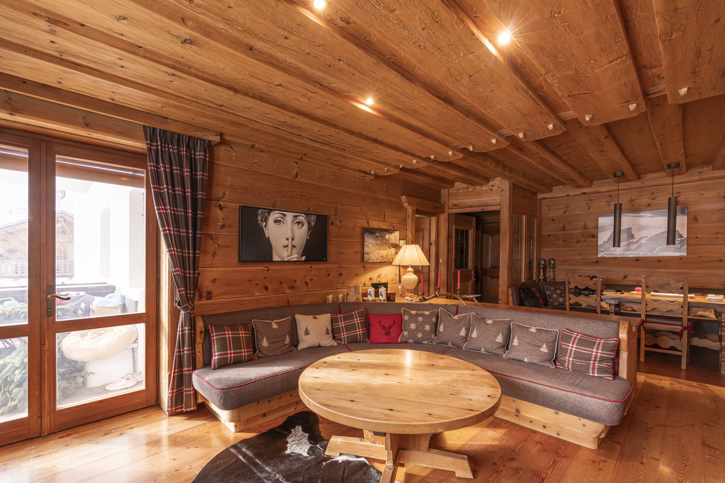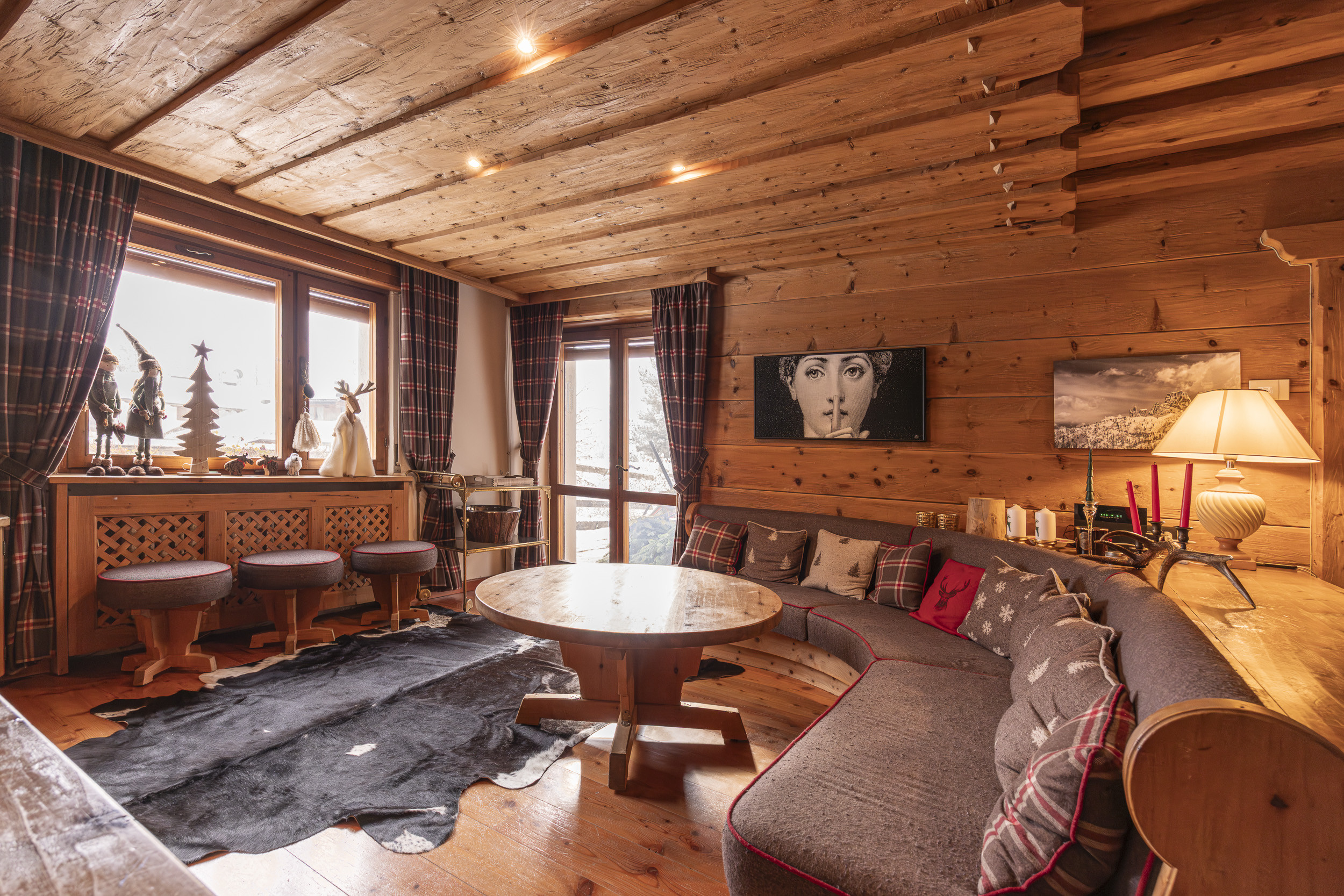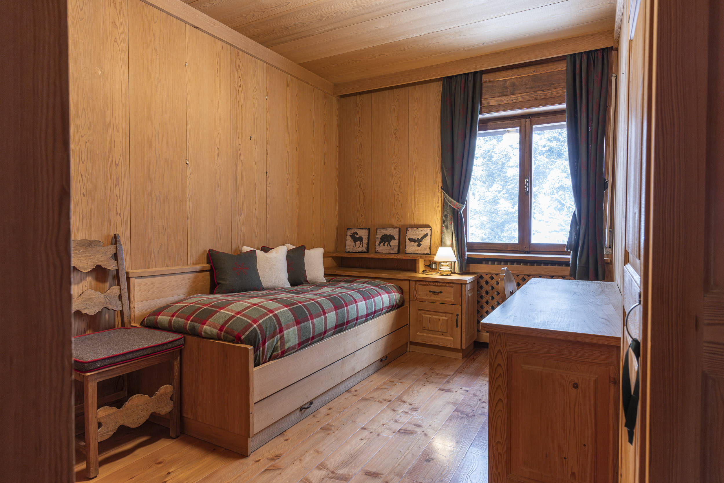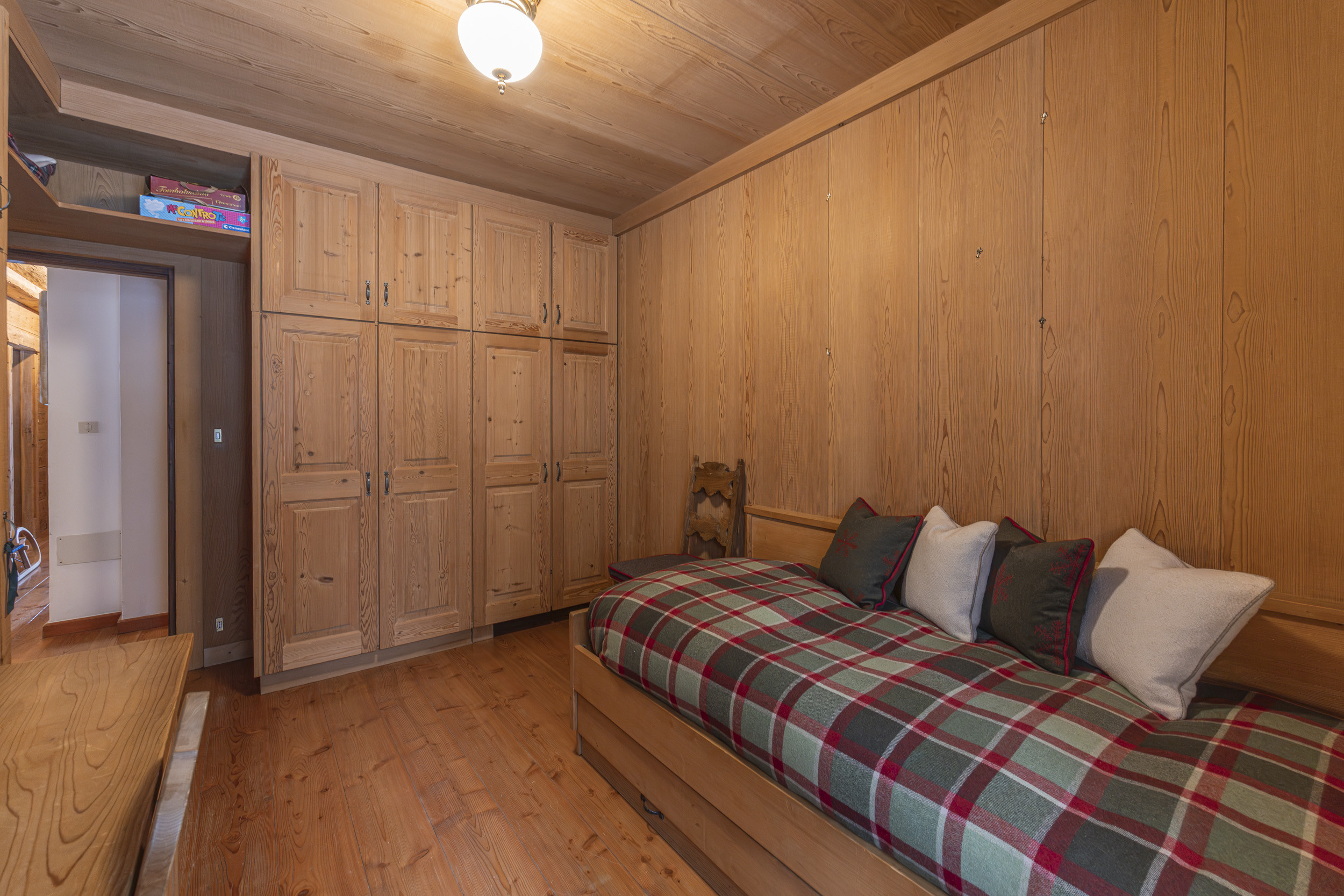 L’appartamento è arredato con cura nei dettagli, in stile rustico, completamente rivestito in legno. Dispone di due camere, due bagni e un comodo divano letto in soggiorno. Per la sua posizione e la capacità ad ospitare fino a 6 persone l’appartamento è ideale per una famiglia o un gruppo di amici che vogliono vivere una piacevole vacanza in montagna con la comodità di essere in pieno centro.