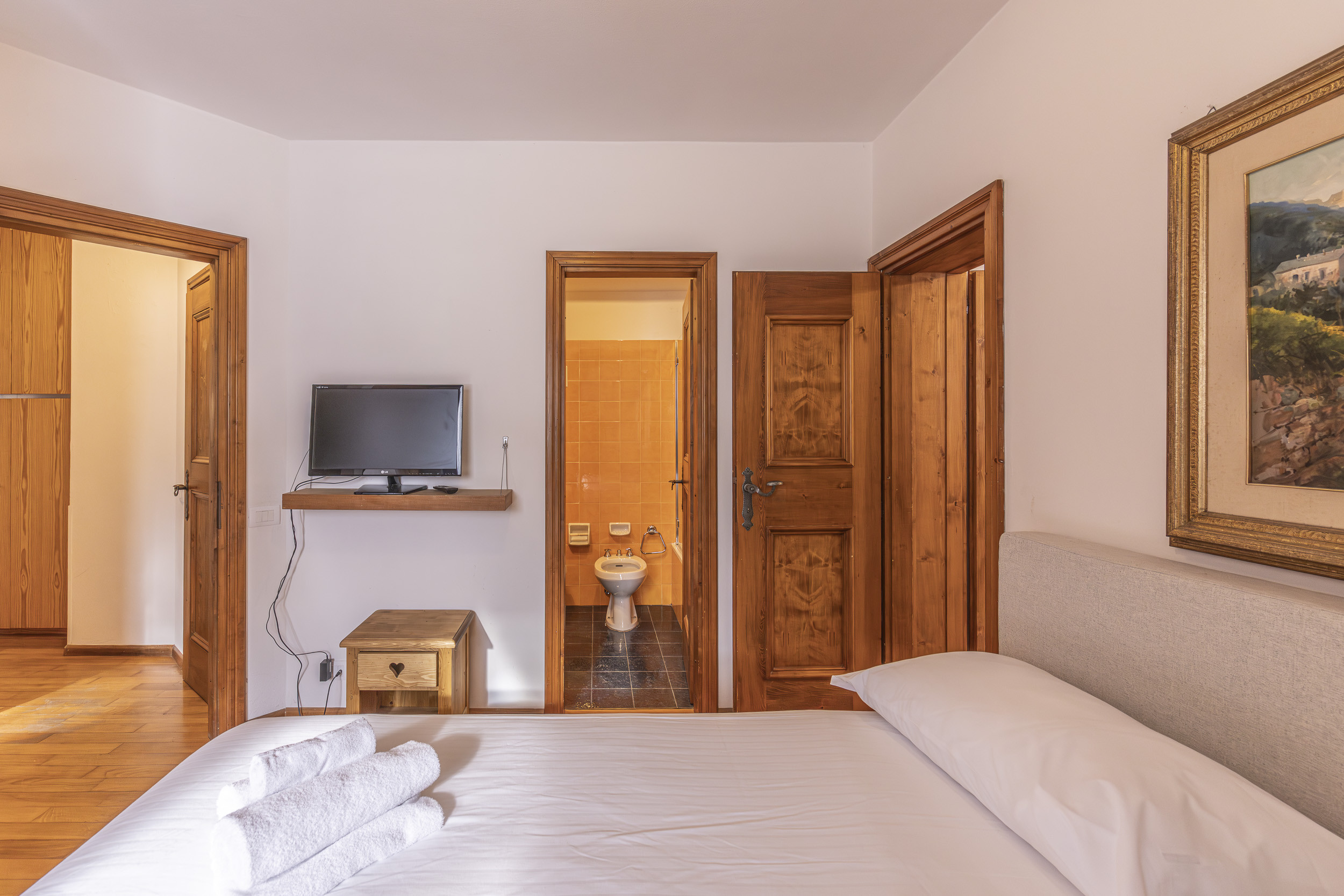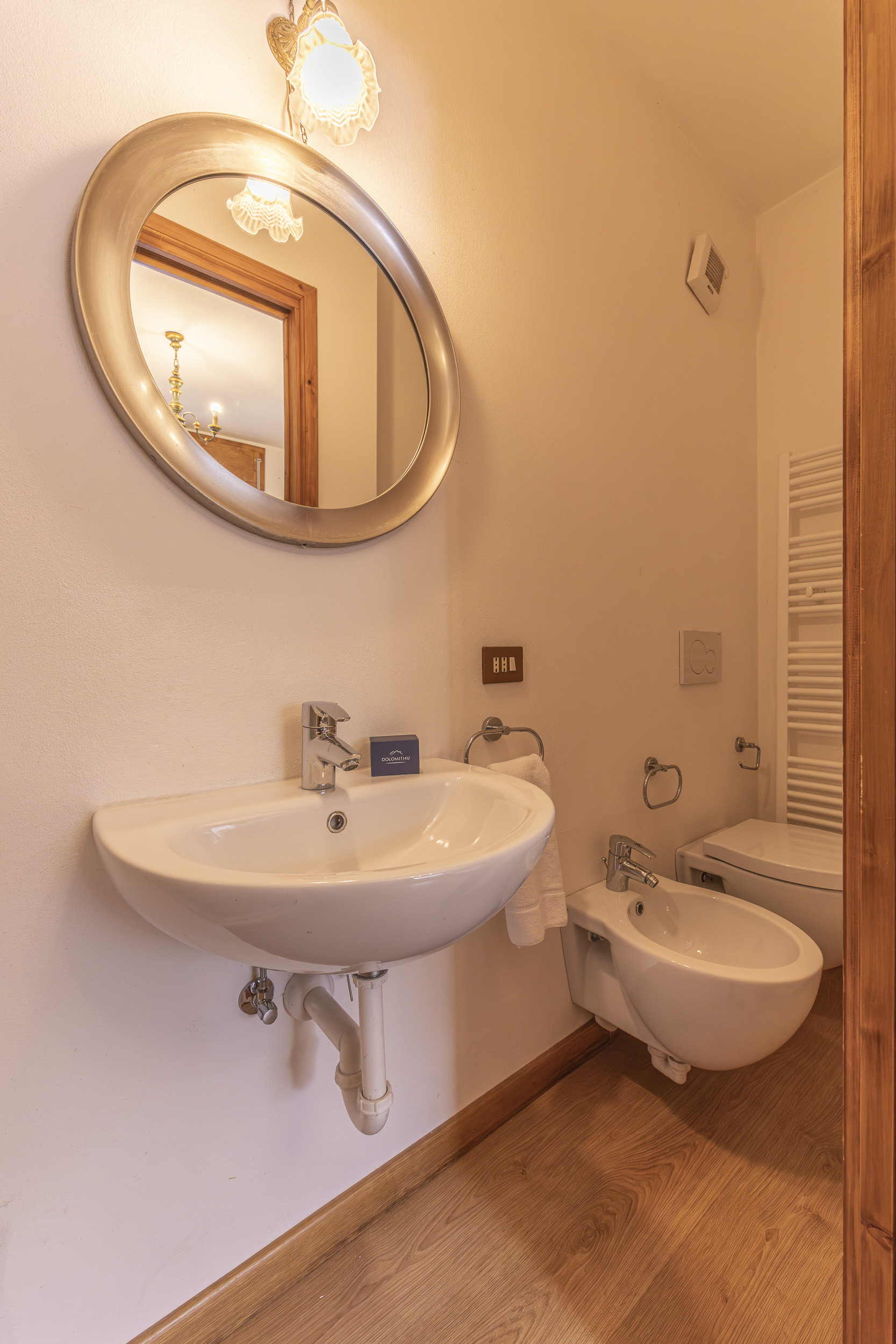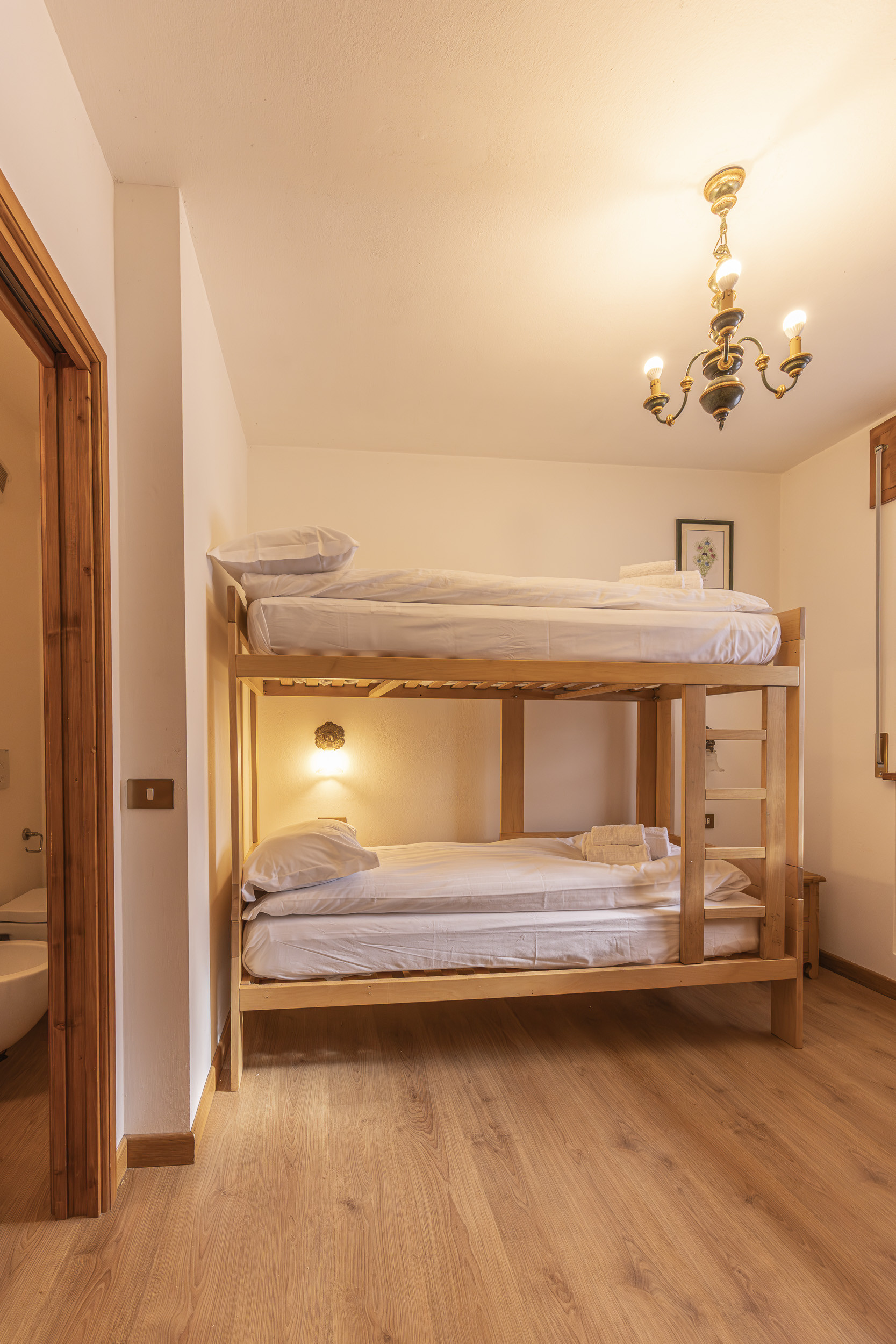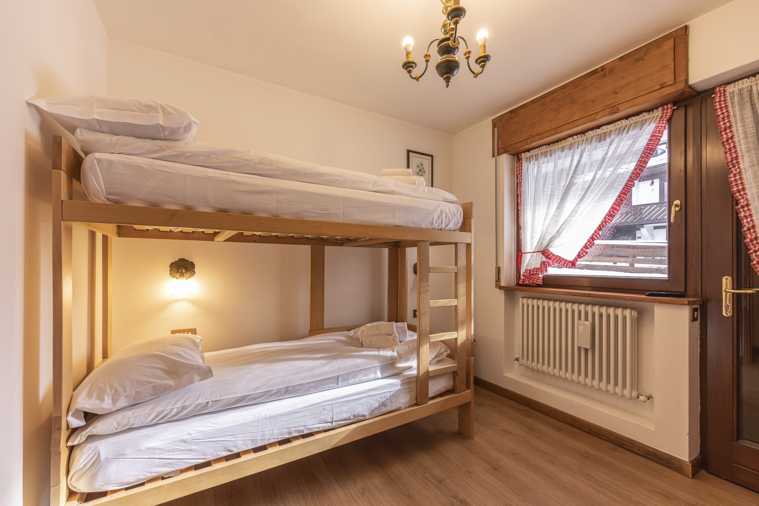 L’appartamento misura 60 mq e si trova al piano terra. La zona giorno è composta da un soggiorno con comodo divano letto, TV Lcd e tavolo da pranzo con sedie in legno. L’angolo cottura è attrezzato con forno, frigo, frizer, lavastoviglie e macchinetta del caffè Nespresso. Ci sono due camere da letto; una matrimoniale con TV, ampi armadi e bagno ensuite dotato di wc, bidet e box doccia. L’altra camera dispone di un letto a castello, armadio e TV. A disposizione un secondo bagno con wc, bidet e box doccia. A disposizione anche una lavatrice/asciugatrice. A completare l’offerta di questo appartamento un posto auto esterno, un deposito sci o bici e il collegamento internet Wi-Fi.