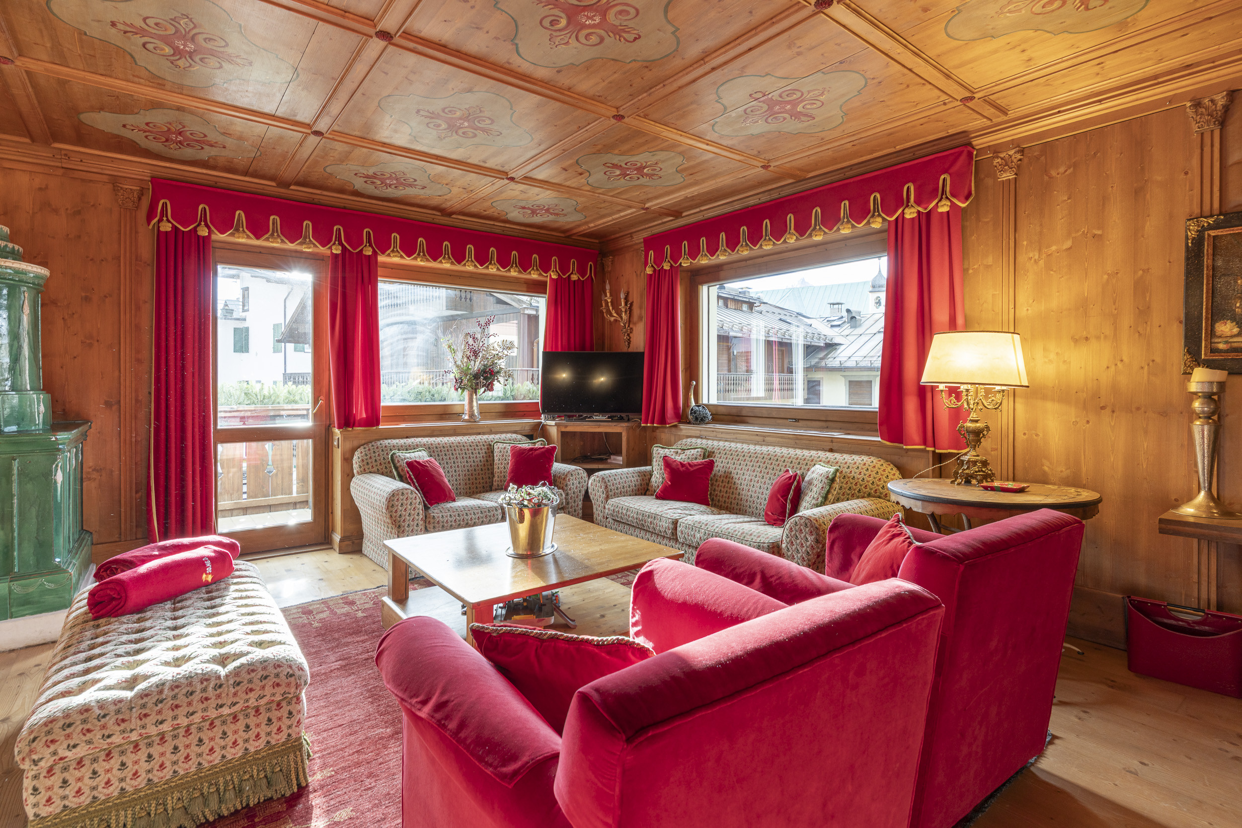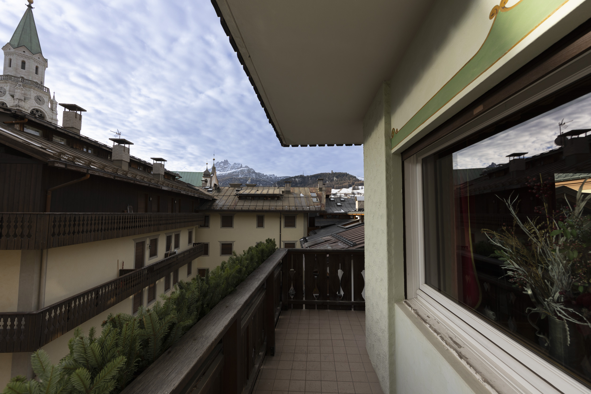 Caratteristiche aggiuntive includono un balcone con vista montagna, ideale per ammirare il paesaggio dolomitico, e un ambiente particolarmente adatto a famiglie. La sua posizione centrale e l'attrezzatura completa lo rendono un'ottima scelta per chi desidera vivere Cortina d'Ampezzo con comfort e convenienza.
