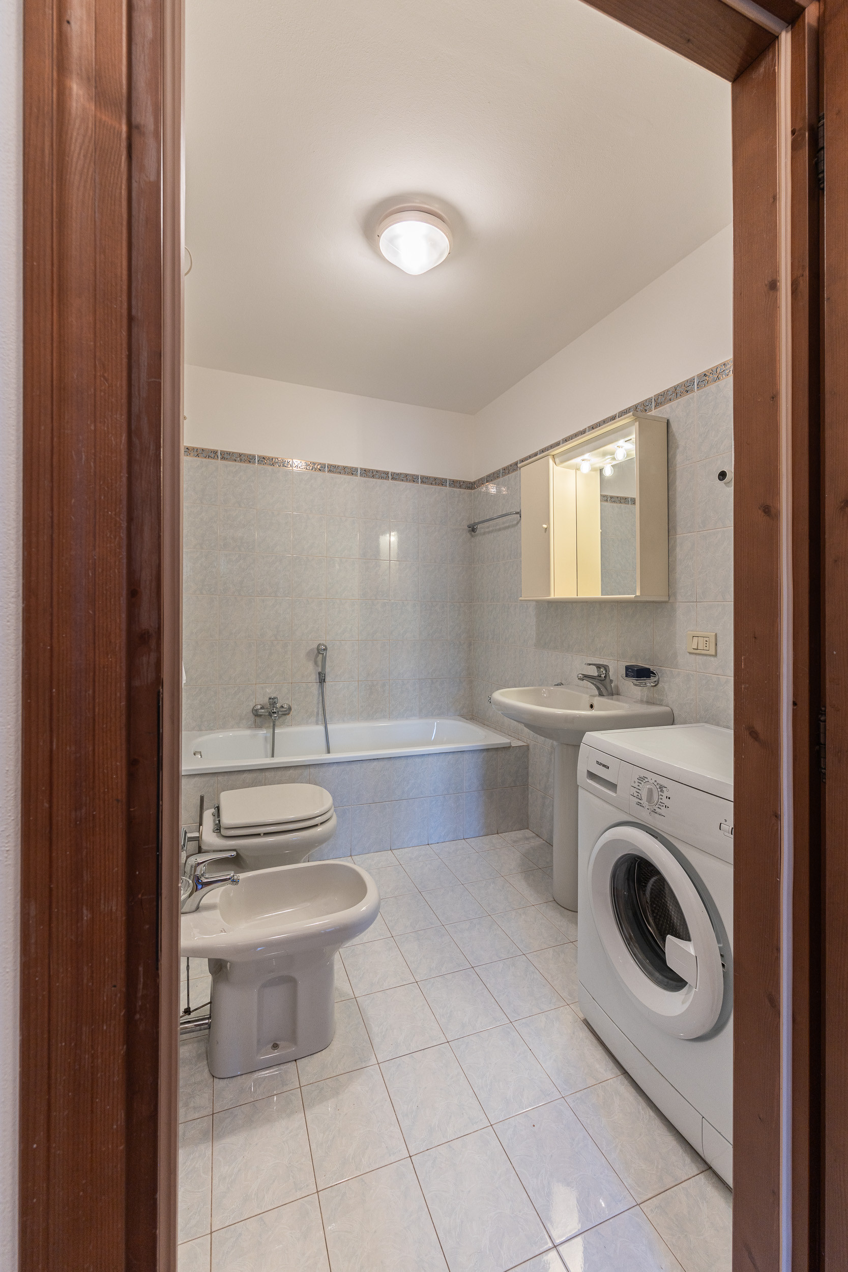 Es sind zwei Badezimmer vorhanden: eines mit Toilette und Waschbecken und das andere komplett mit WC, Bidet und Badewanne.