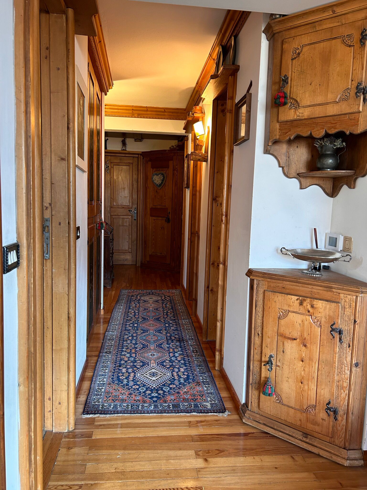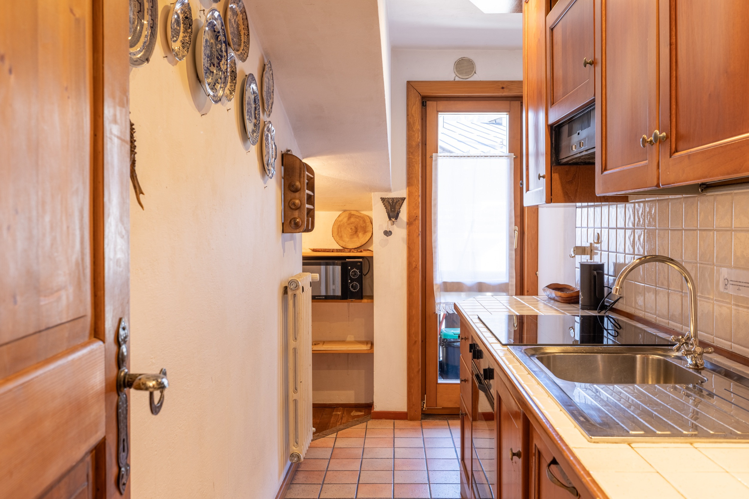 Die Innenräume, sorgfältig gestaltet und mit Holzböden ausgestattet, bieten eine warme und einladende Atmosphäre. Die voll ausgestattete Küche verfügt über moderne Haushaltsgeräte wie Backofen, Geschirrspüler, Kaffeemaschine und Waschtrockner.