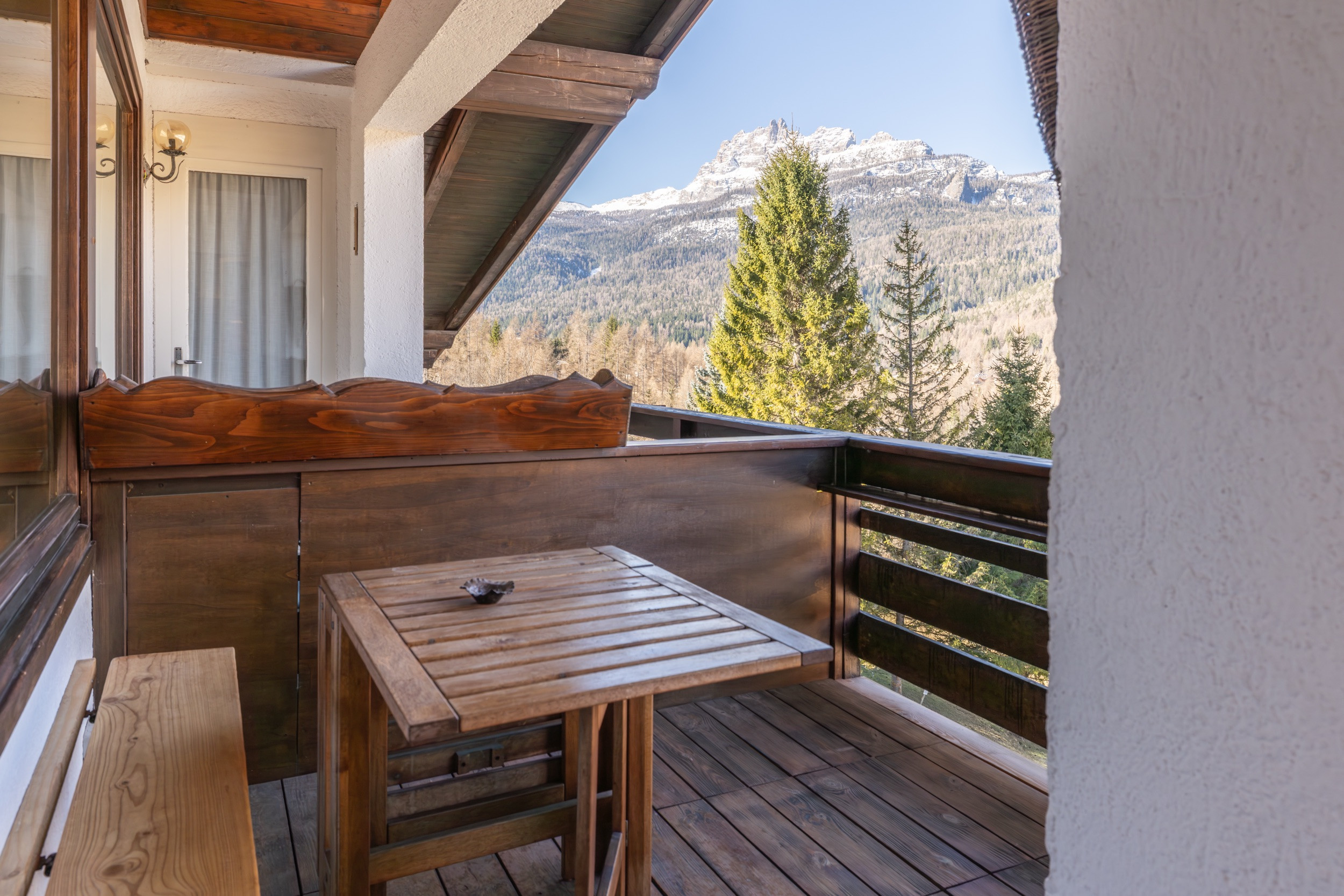 Draußen ermöglicht ein privater Balkon den Genuss eines herrlichen Panoramablicks auf die Berge. Wintersportliebhaber werden die Nähe zu den Faloria-Aufstiegsanlagen schätzen, während Golfbegeisterte den Cortina Golf Club leicht erreichen können.
