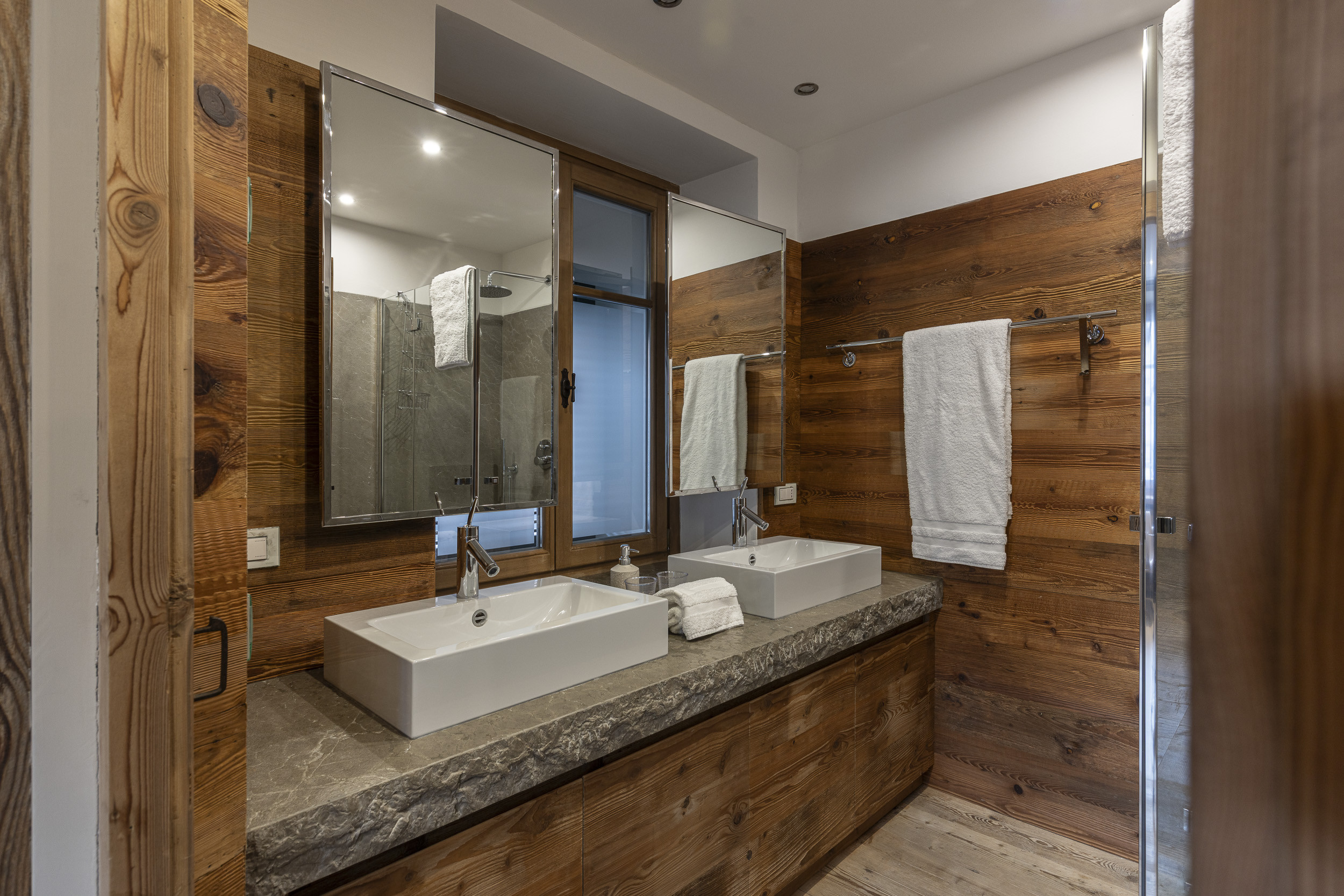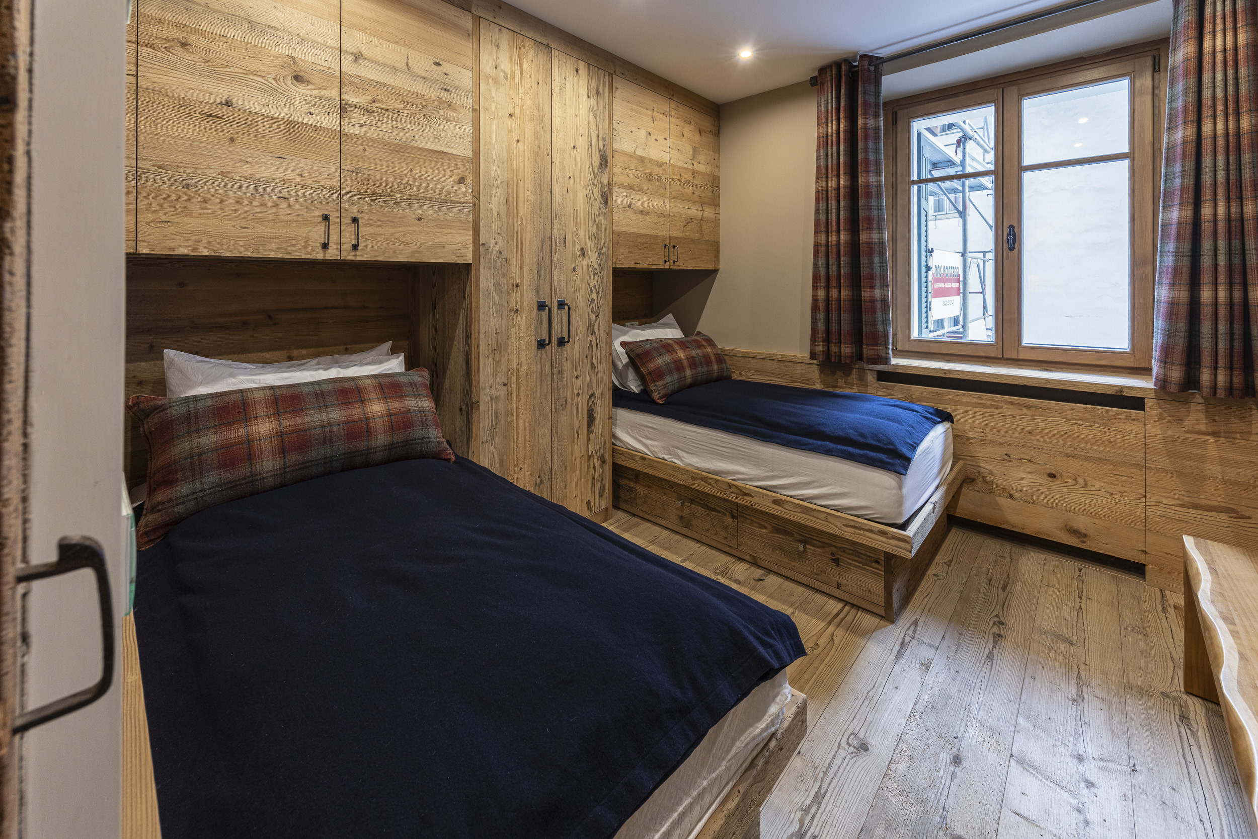 Die Nachtzone verfügt über 4 Schlafzimmer: Ein Zimmer mit bequemem Doppelbett und Badezimmer en-suite mit geräumiger Dusche; ein zweites Zimmer mit zwei Einzelbetten und Badezimmer mit Dusche; ein drittes Zimmer mit Doppelbett, das von einem vierten Zimmer mit Etagenbett und einem Einzelbett flankiert wird, die von einem dritten Badezimmer mit Badewanne bedient werden.