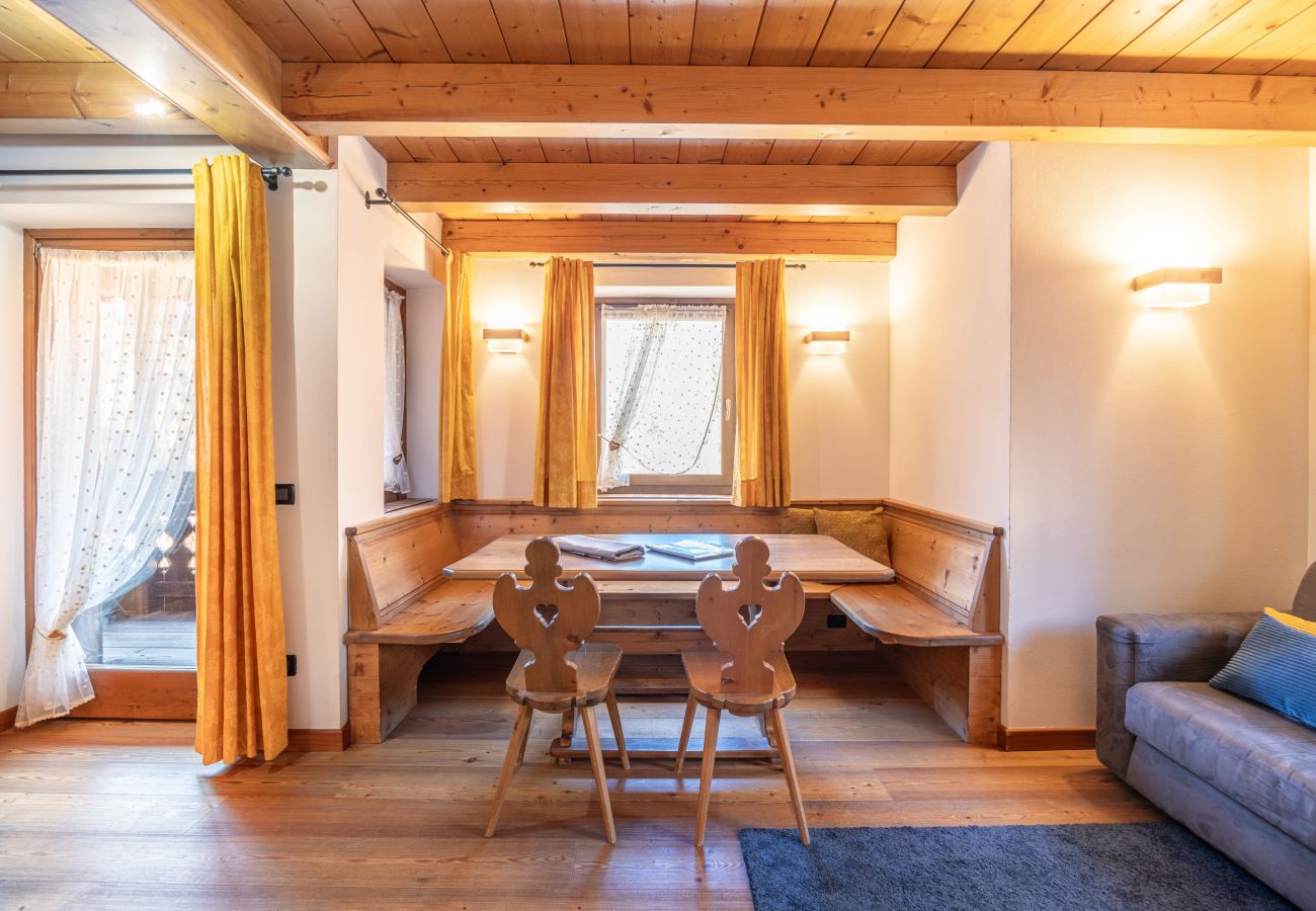 Die Wohnung ist 37 qm groß und befindet sich im ersten Stock. Es ist mit Geschmack und Liebe zum Detail eingerichtet. Der Wohnbereich besteht aus einem Wohnzimmer mit einem bequemen Schlafsofa und einem LCD-TV. Die Küchenzeile verfügt über einen runden Esstisch mit 4 Stühlen und eine super ausgestattete Küche mit Backofen, Kühlschrank, Induktionskochfeld und Geschirrspüler. Der Schlafbereich besteht aus einem Doppelzimmer mit großem Kleiderschrank und einem Badezimmer mit Bidet und großer Dusche. Sowohl vom Wohnbereich als auch vom Schlafzimmer gelangt man auf den Panoramabalkon. Abgerundet wird das Angebot durch die WLAN-Internetverbindung und einen Außenparkplatz. Das Haus hat auch einen Aufzug. Für einen angenehmen und erholsamen Bergurlaub im Winter wie im Sommer fehlt es wirklich an nichts.
