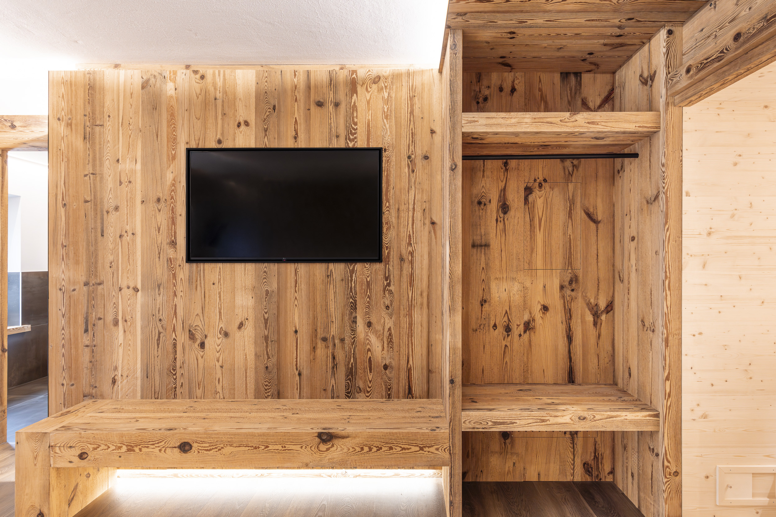 A small balcony offers a splendid panoramic view of the surrounding mountains, inviting guests to breathe the pure air of the Dolomites. Guests can enjoy free Wi-Fi, a flat-screen TV, a safe and all the comforts necessary for a peaceful and regenerating stay.