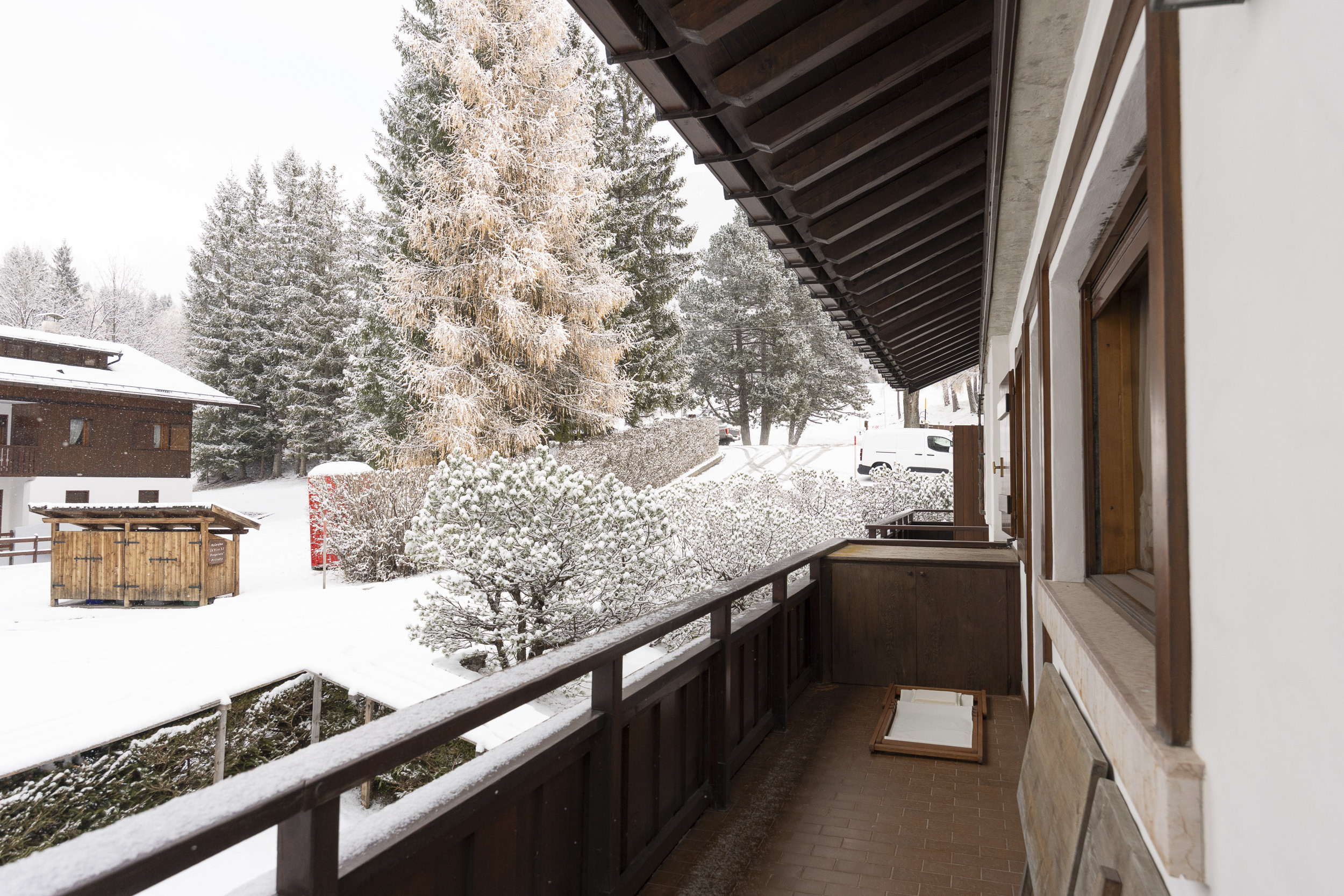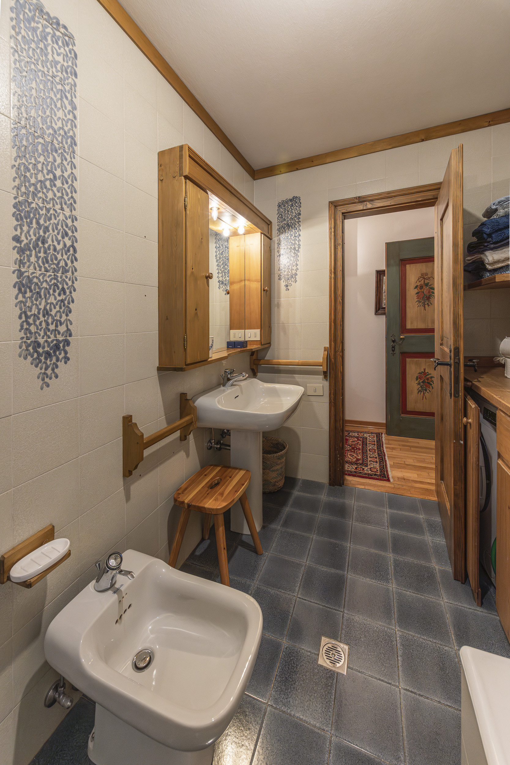 The balconies of the living area and the sleeping area allow you to admire the Dolomite panorama in all its beauty, offering pleasant moments of relaxation in the open air. The apartment has two bathrooms, one with a shower and one with a bathtub, to ensure practicality and comfort for all guests.
