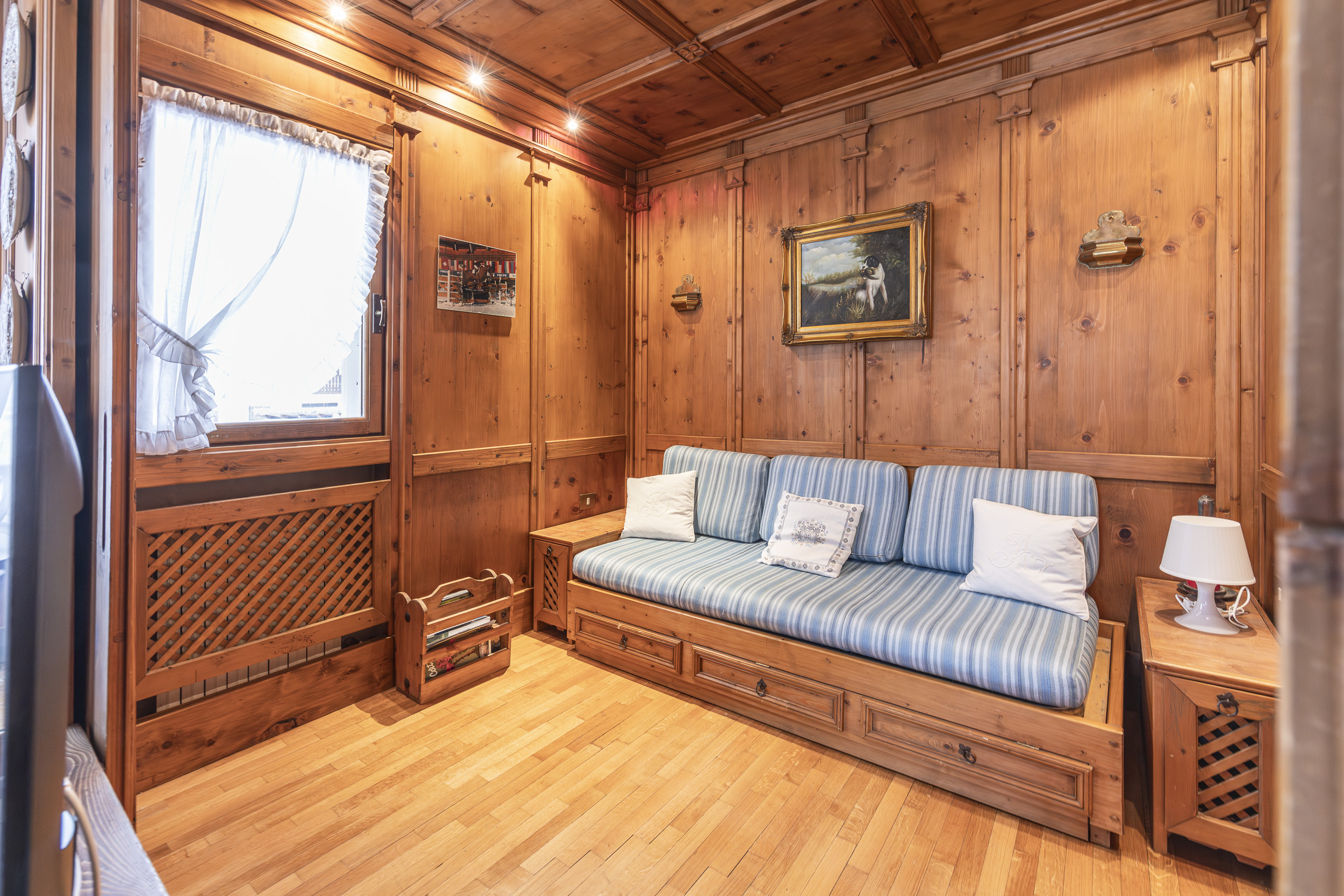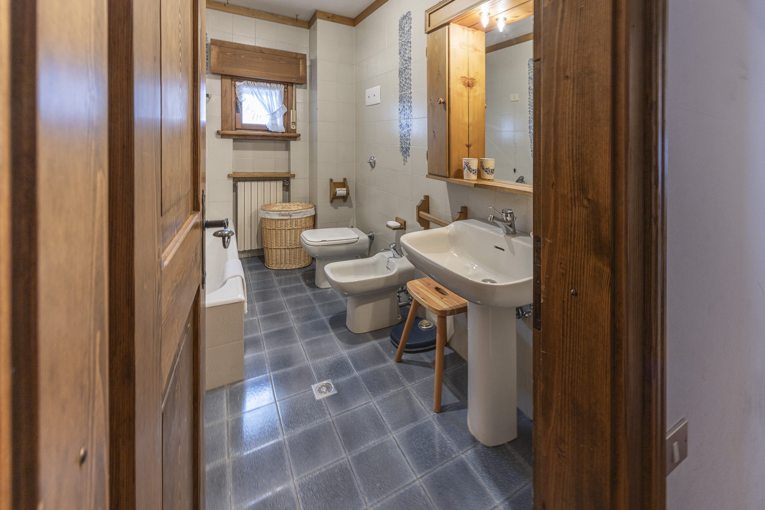 The apartment is carefully furnished in a rustic style, completely lined with wood. It has two bedrooms, two bathrooms and a comfortable sofa bed in the living room. Due to its location and the capacity to accommodate up to 6 people, the apartment is ideal for a family or a group of friends who want to enjoy a pleasant mountain holiday with the convenience of being in the town centre.