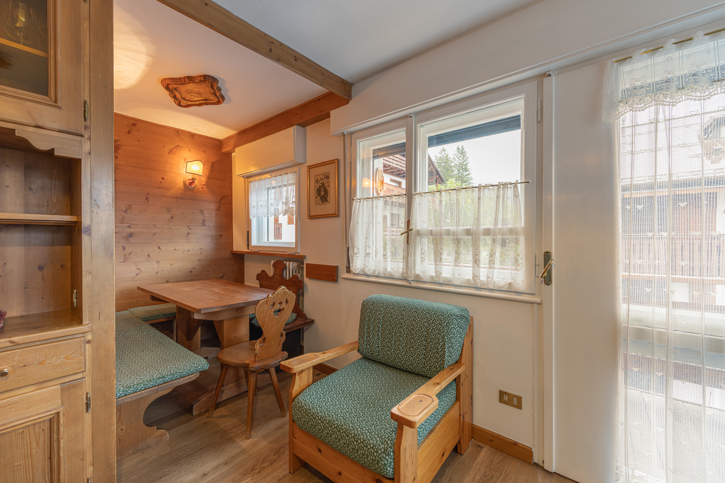 Delightful two-room flat completely furnished in wood, located in a central position, inside a well-maintained building with lift and large garage. On the ground floor, there is a convenient Restaurant Pizzeria. The location is truly strategic: a few steps away are the mini golf, the ice stadium and the "Arrow in the Sky" cable car, which leads directly to the spectacular Dolomite peaks. Ideal for those who want to fully enjoy the conveniences of the centre — with boutiques, venues, restaurants and bars — without giving up proximity to the main tourist and sports attractions. An excellent solution to enjoy the magic of Cortina, the Queen of the Dolomites, in every season of the year.