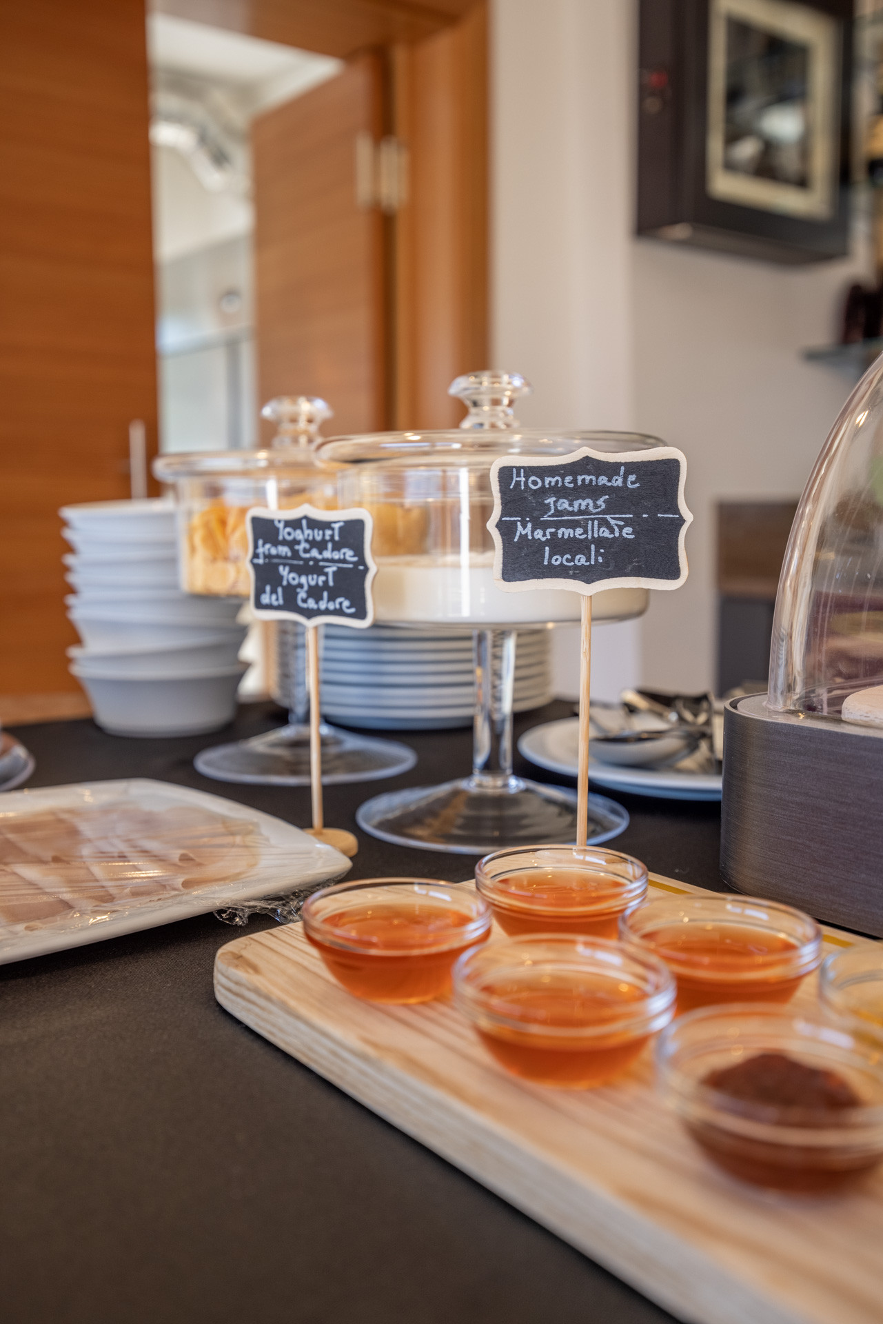 The wellness room is 20 square meters and is located on the first floor. It has a comfortable double bed, a sauna and a whirlpool for exclusive use, a desk, a wardrobe, a flat-screen TV, a fridge and a panoramic balcony with lake and mountain views. The room has a private bathroom with toilet, bidet, shower and hairdryer. Available free Wi-Fi, air conditioner and a parking space in the outdoor car park. Breakfast is included and served in the panoramic lounge bar.