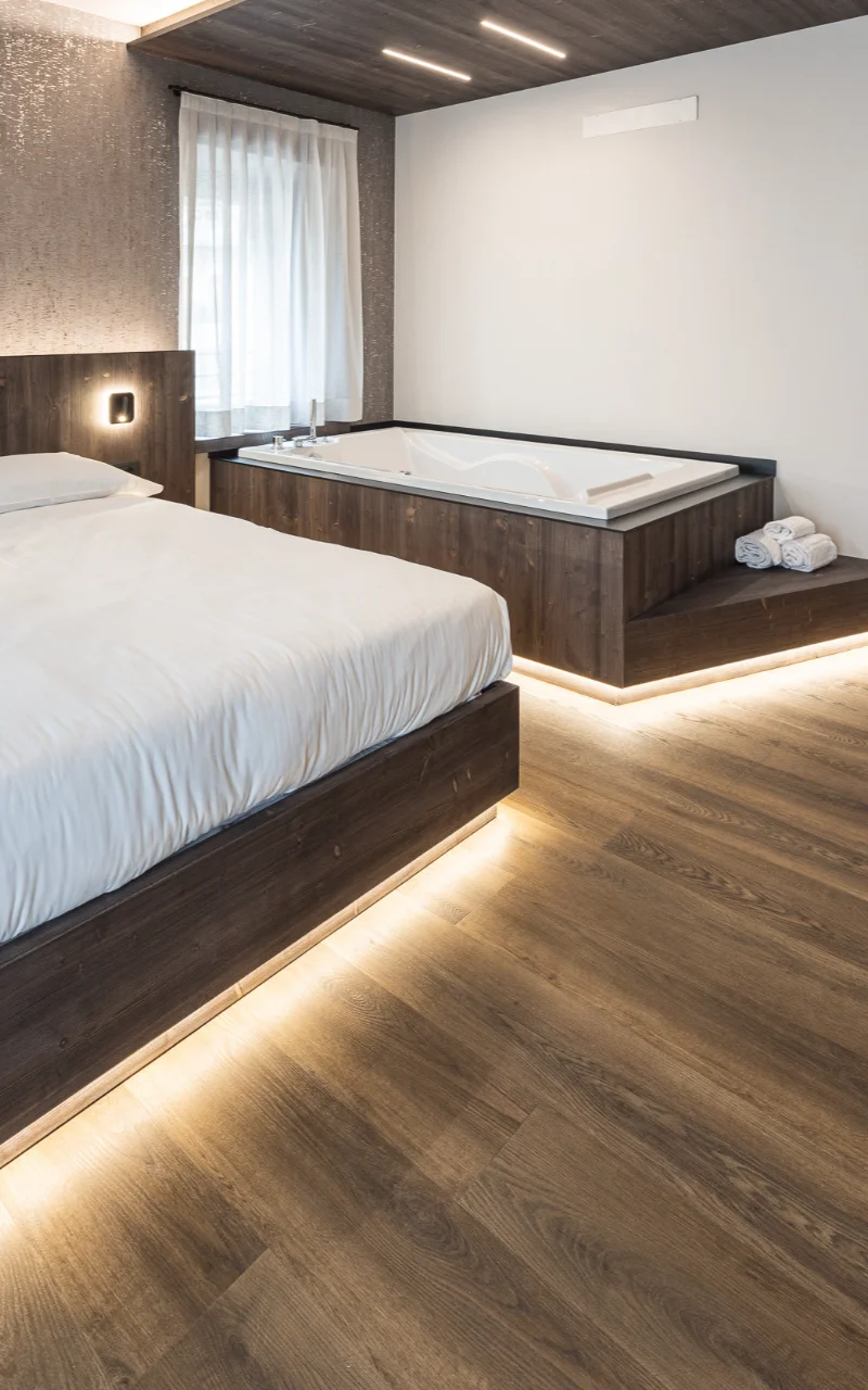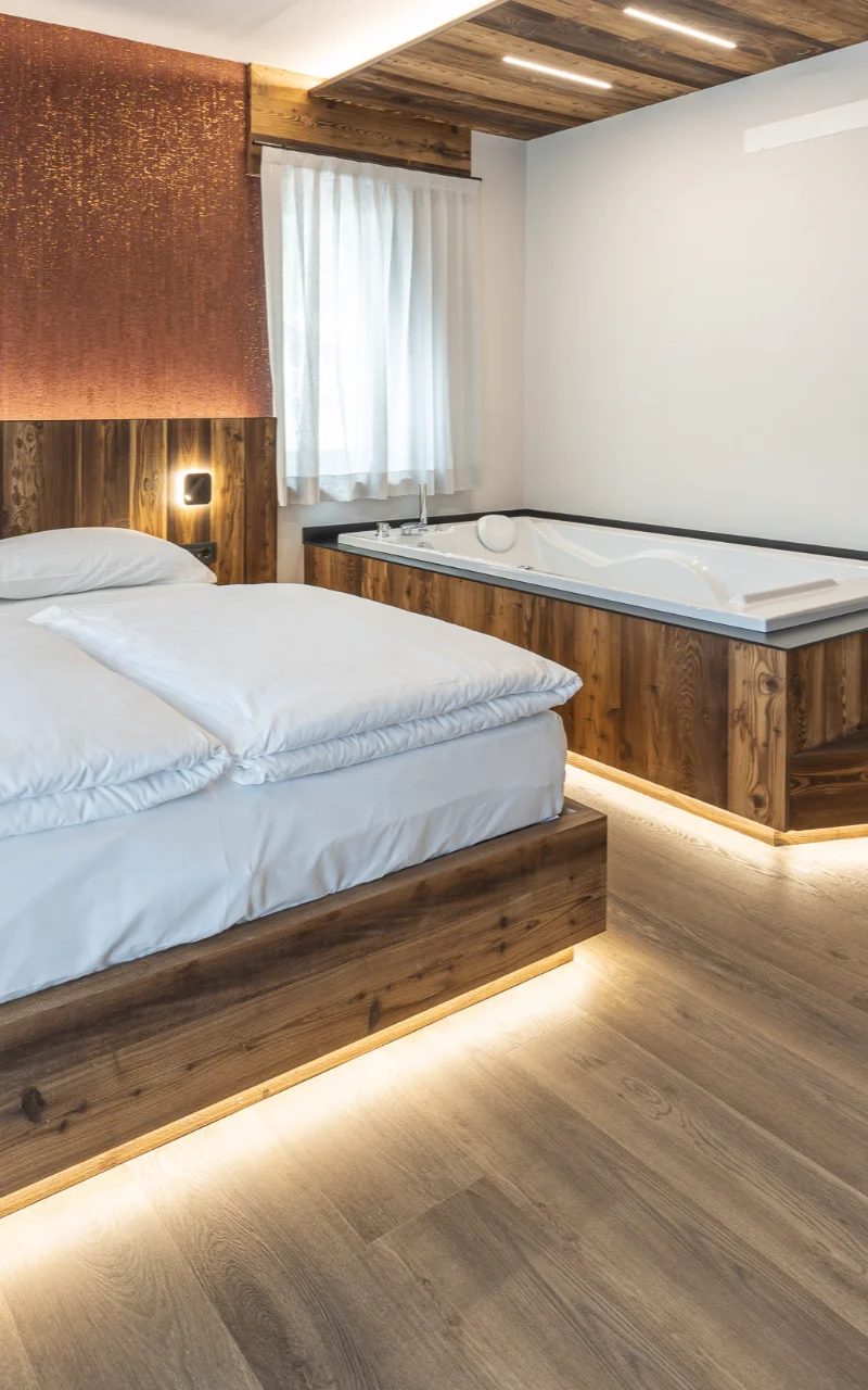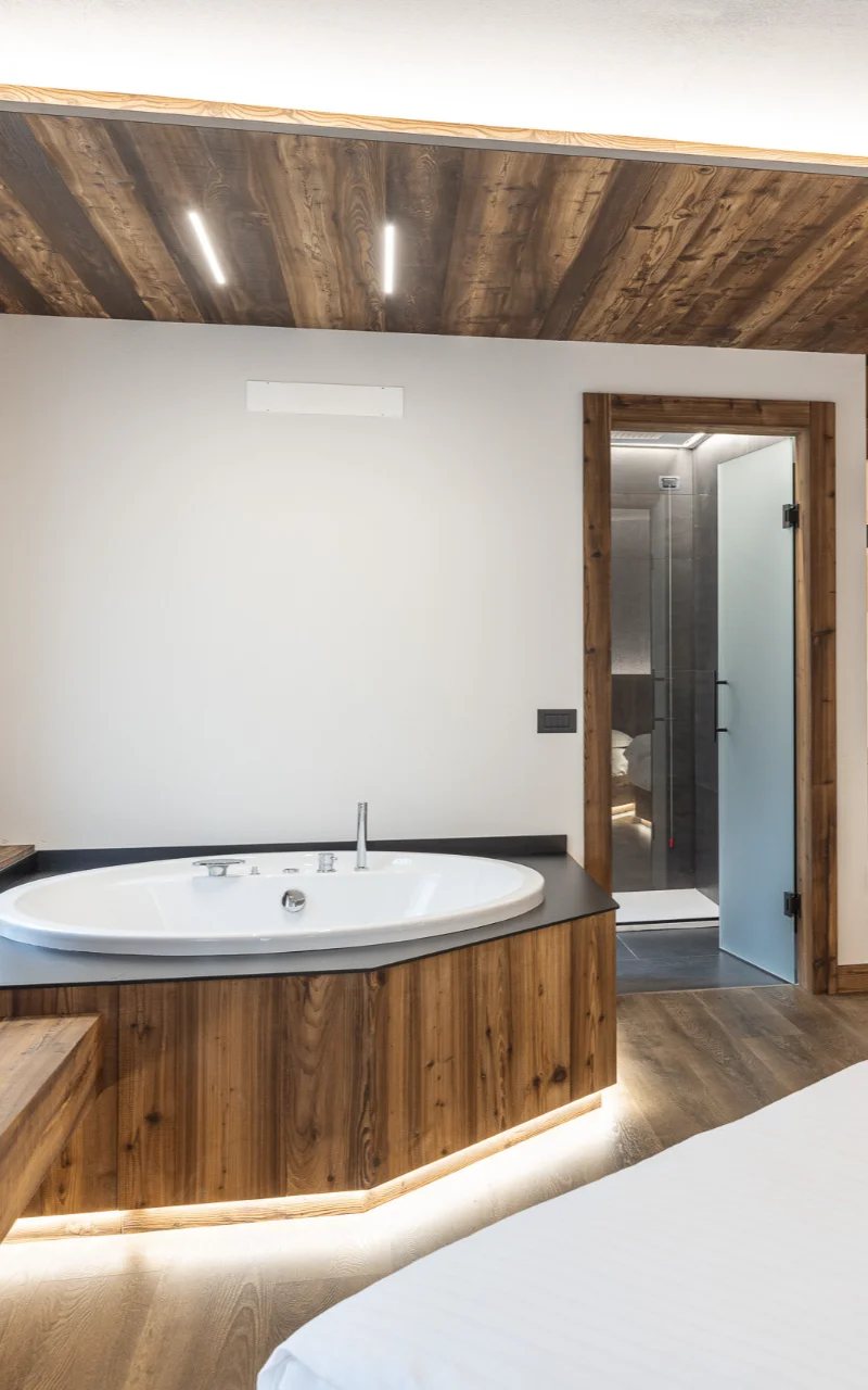 Qui il design dialoga con la montagna, l’aria profuma di silenzio e ogni gesto è pensato per far ritrovare equilibrio e leggerezza. Un luogo dove il tempo si distende e il relax diventa esperienza vera.